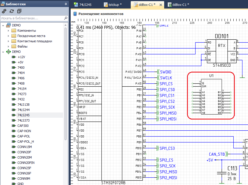 Также компонент можно будет разместить на плате. Т.е. по сути работа с компонентом в проекте мало отличается от "обычного" (компонента, который находится в библиотеке Delta Design).