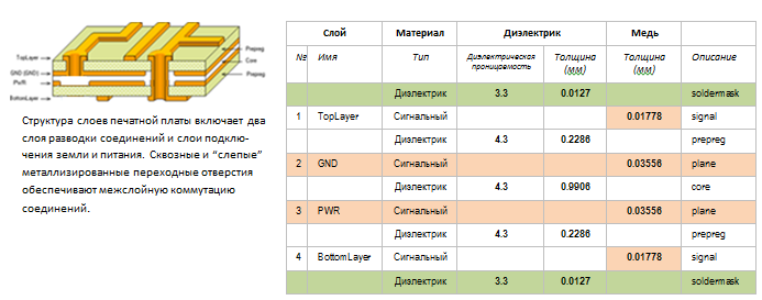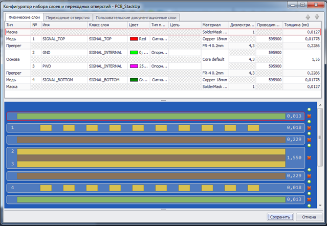 Разработанная структура слоев и выполненные в ней настройки используются при проектировании печатного монтажа.