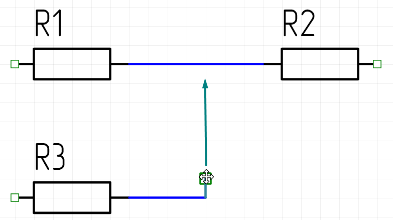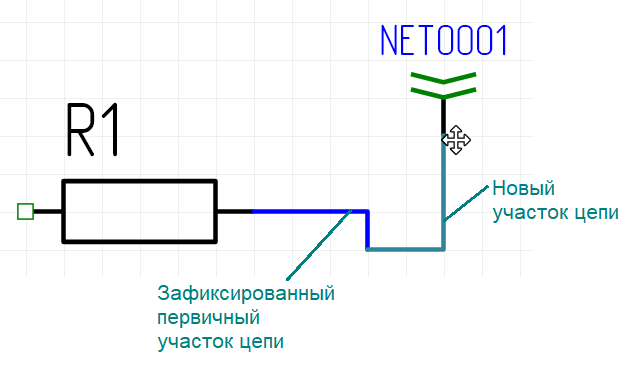 После начала размещения цепи при перемещении курсора по схеме показывается предварительный вид цепи, состоящей из одного или нескольких сегментов.