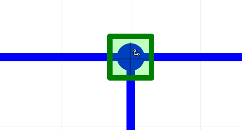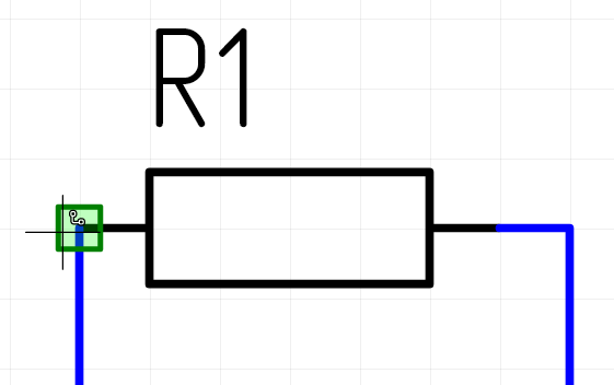 Если находясь в режиме размещения цепи, курсор наведен на объект, к которому можно подключить цепь, то на данном объекте отобразится зеленый квадрат, указывающий на возможность начала размещения цепи.