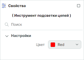 Подсветить цепи можно с помощью инструмента, вызванного из главного меню "Инструменты" → "Подсветить"- Выберите инструмент "Подсветить". В панели "Свойства" будут отображаться параметры инструмента, в поле "Свойства" → "Настройки" → "Цвет" выберите цвет подсветки (Рис.9а).
