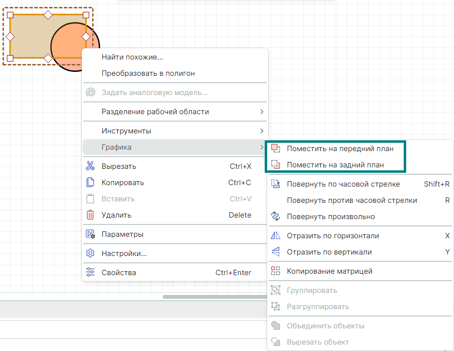 - При выборе пункта "На передний план" выбранный объект будет перенесен на самый верхний уровень отображения поверх остальных объектов.