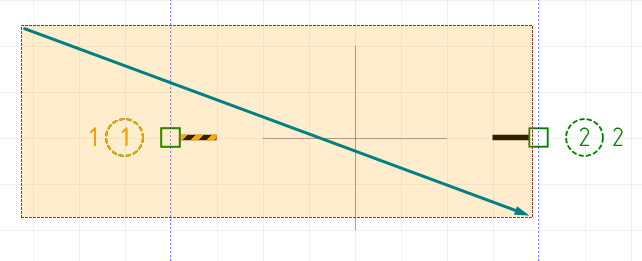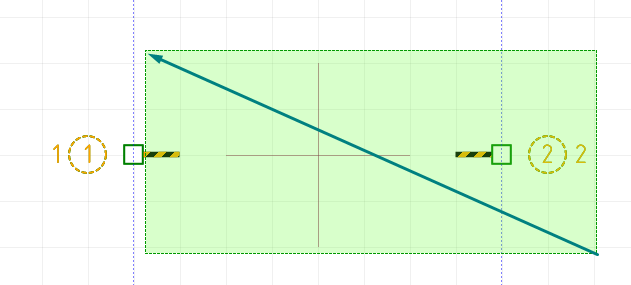 Зайдя в режим добавления выводов, подведите курсор к линии границы, к которой вы хотите добавить контакт (в данном случае к вертикальным линиям границ), под курсором появится предварительный вид контакта.