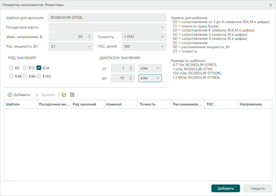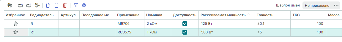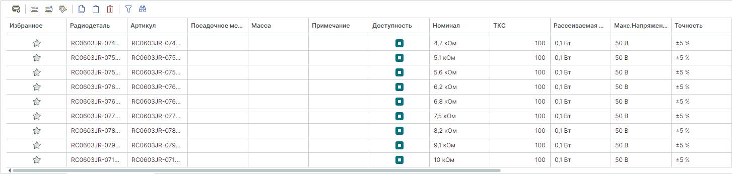 Первая строчка будет соответствовать резистору RC0575, вторая - резистору MR706.