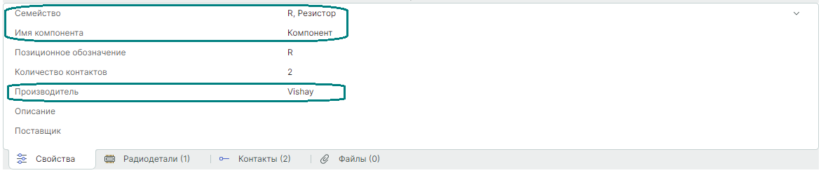 Наконец, укажем данные о производителе, для этого в поле "Производитель" введите "Vishay".