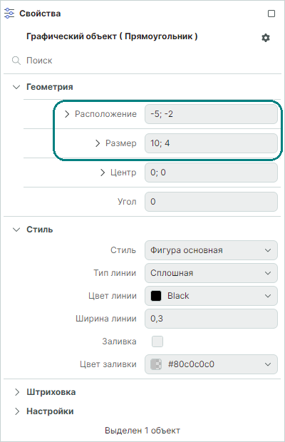Выделите прямоугольник, в панели "Свойства" будут отображаться его свойства.