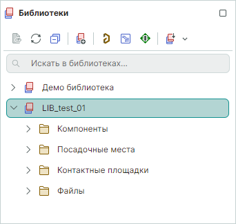 В панели навигации появится элемент новой библиотеки, по умолчанию библиотеке присваивается имя "Новая библиотека". Если по какой-то причине обновление данных в панели не произошло, нужно нажать кнопку